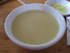 把粟米磨成粉,再煮成糊,以前沒有米飯吃,是山區農民的主要食糧。
