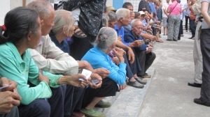 六、有位大嬸指著身旁行動不便的老人,說「就就啦就就啦」,然後使勁地向我微笑。愚笨的我在她重覆了很多次「就就啦就就啦」終於明白,就跟她說「人人都要排隊的」,再使勁地向她微笑。