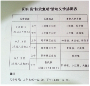 香港人和陽山人,城市人和村民,看得見的和看不見的,管治的人和被管治的人,我們總喜歡作區分及以此為一條不能磨滅的界。即使他們就是這樣這樣,我們就是那樣那樣,並不代表大家不能明白和尊重對方。比方說,做篩查時不難留意到有些村民總手執報紙或尼龍袋,在排隊時或坐在視力燈箱前時墊著坐;有些會堅持把椅子旋轉180度才坐下;有些會連人帶椅的排上 前,擾亂了秩序。他們的行徑對我們來說是古怪又無理,但這是我們的「道理」。他們的「道理」其實還可以理解,就是不喜歡坐別人坐過的椅子,被坐暖的都不想 坐,又認定別人坐過的一定很髒。又比方說,跟當地政府人員吃一頓飯,必要敬酒。雖知道入鄉隨俗,但每扒幾口飯菜就要站起來敬酒,又不知道自己有否失禮,難免不知所措。後來留意到他們知道香港義工不喜飲酒又十分講衛生,特意以蘋果醋代酒,亦給我們準備了多雙公筷。