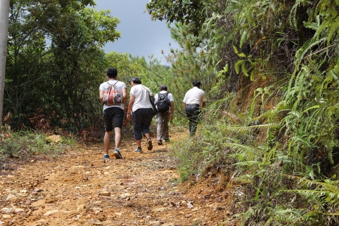 香港義工17人於早上7時乘坐直通巴土, 大約中午1時20分抵達梅縣。於酒店安頓後,義工們前往雁洋鎮“力行”第一個植林基地“還趣山莊" 視察樹木生長情況,喜見樹木參天, 茁壯成長,造水流量穩定,為附近村民提供源源不絕清澈泉水!及後,義工們前往拜候兩位國內義工 -- 烈伯和鄧院長。他們多年默默耕耘,義務協助工作,近年因年事漸高,體力不繼,無奈留家休養。喜 見他倆精神氣色頗佳,義工倍感安慰!