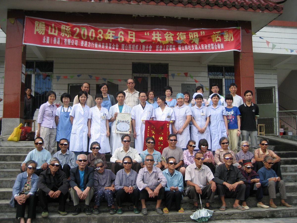 2008年6月5日至11日,共為148位貧困白內障患者進行復明手術,並加放人工晶體;同時免費為患者作術前檢查 (包括量血壓、血糖及血常規、心電圖、X光胸肺片。)及提供手術期間患者與陪人之食宿。 6月12日早上覆檢最後一批術後復明者後,本次「扶貧復明」活動完滿結束。
