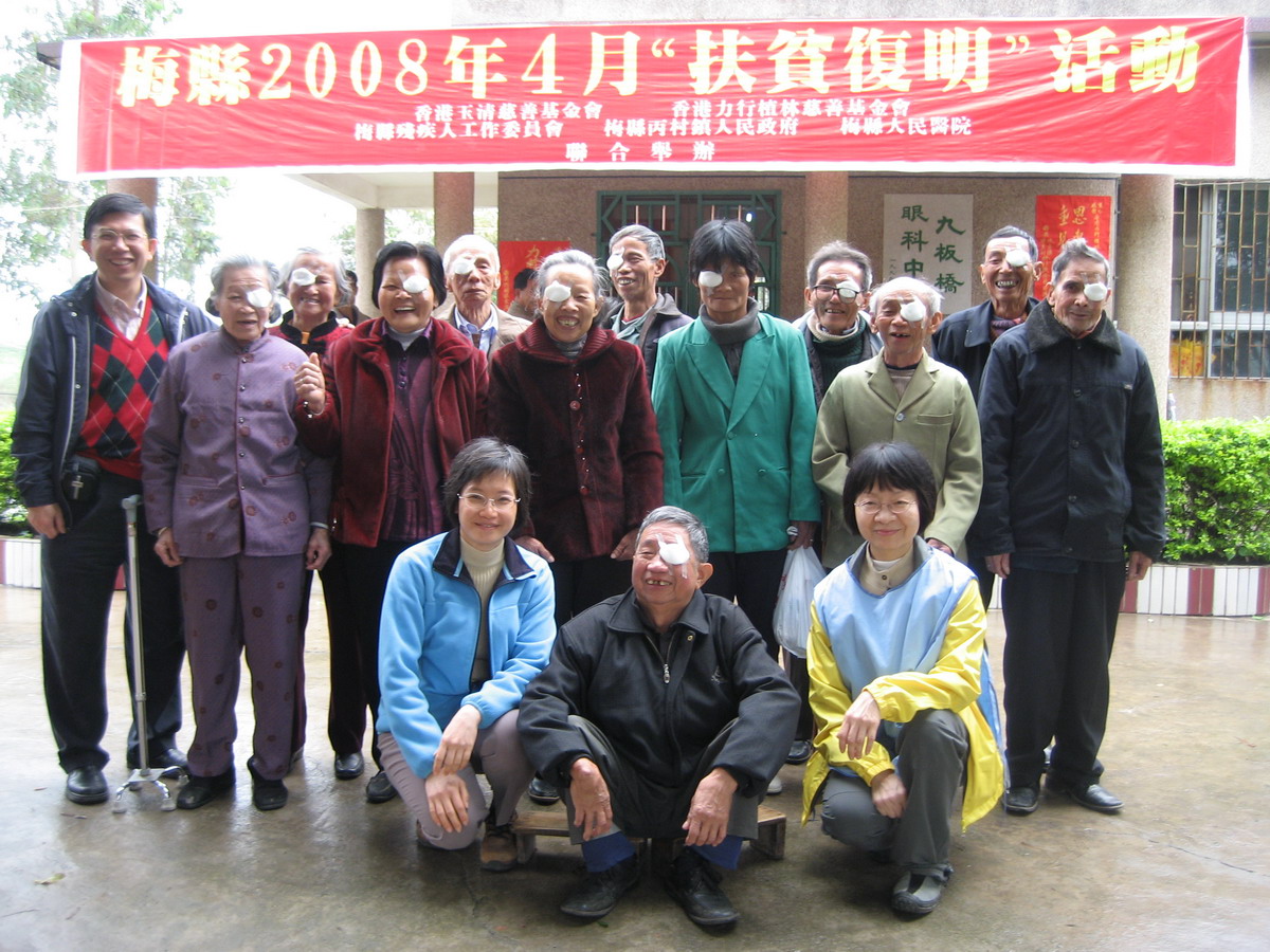 由香港力行植林慈善基金會主辦,香港玉清慈善基金捐款。由梅縣人民政府殘疾人工作委員會,丙村鎮人民政府,梅縣人民醫院協辦的【梅縣2008年4月“扶貧復明”活動】,在丙村鎮、九板橋眼科中心順利舉行。
