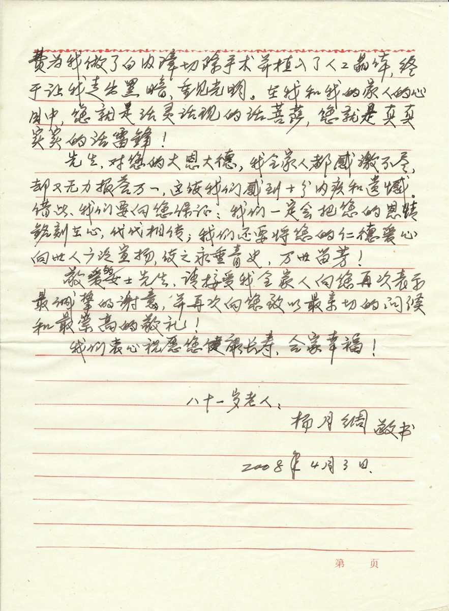 事後寄來的信函