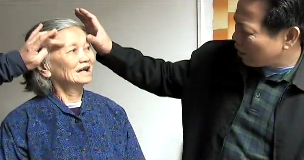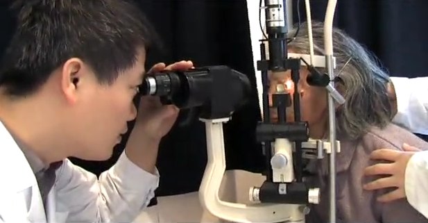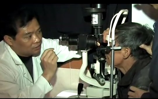 医生护士义工替老人检查眼睛 录像